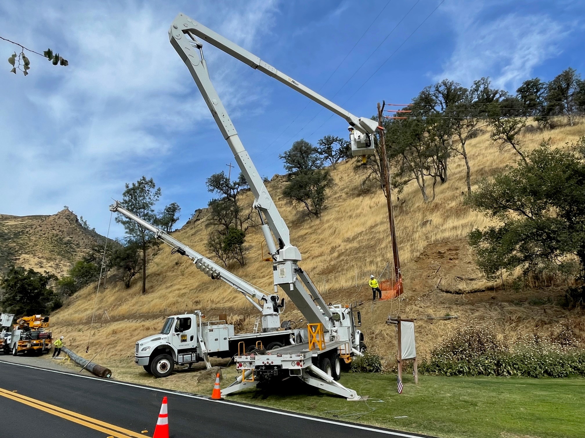 Wilson worked closely with PG&E’s engineering team to construct nearly 30 miles of system hardening, which included more than 400 poles and nearly 150,000 ft of new tree wire conductor. To accommodate PG&E’s request to expedite the project, Wilson crews successfully completed all 30 miles of system hardening in less than four months, from March 2022 to June 2022. To meet the tight scheduling requirements, Wilson had up to eight crews working on this project at once.