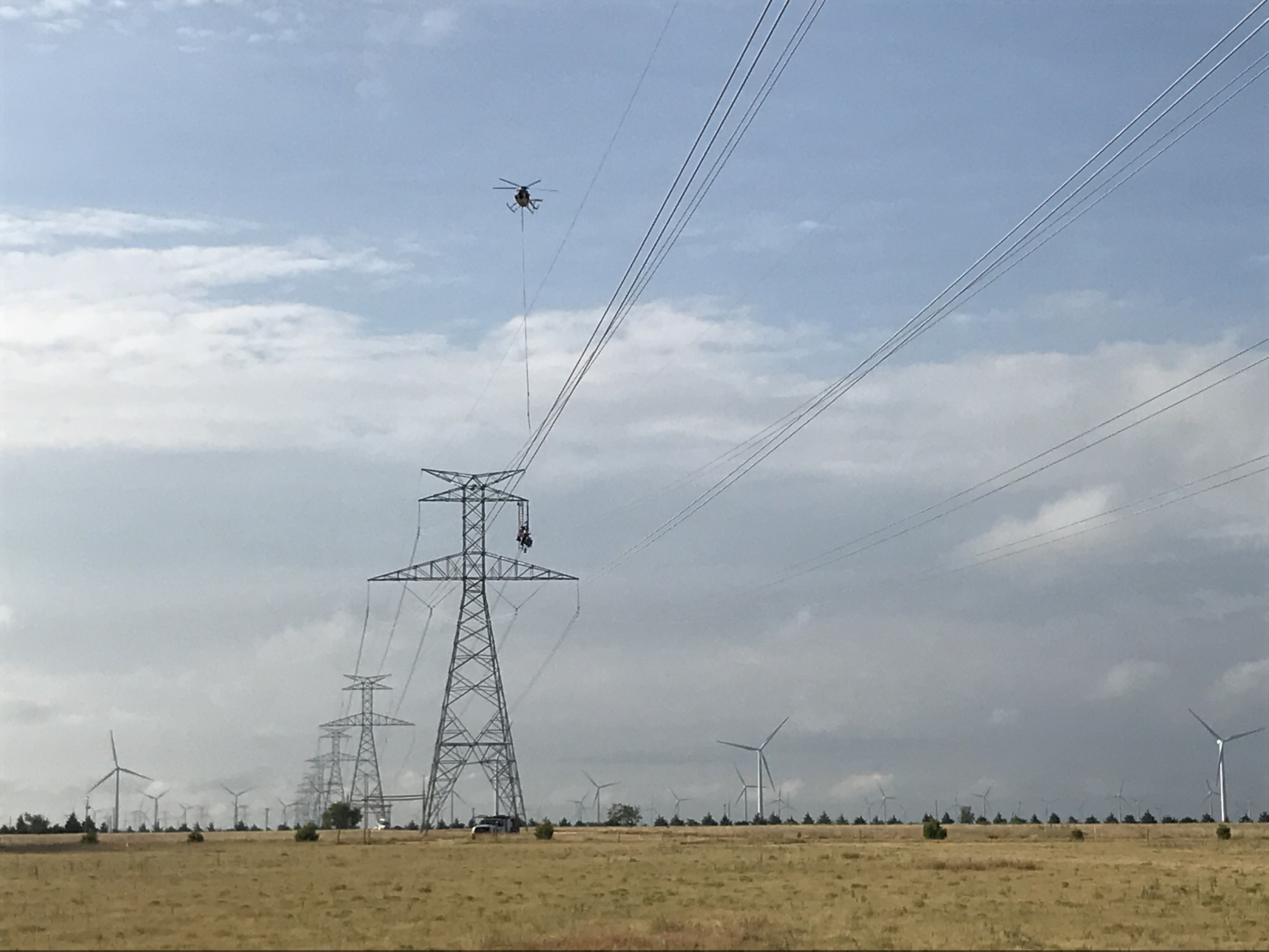 The transmission line, part the state’s Competitive Renewable Energy Zone (CREZ), traversed several established landowner properties, and one of the project requirements was to minimize the impact to the project right-of-way. Wilson’s crews performed most of the work with its company-owned MD 500 helicopters to minimize heavy equipment impacts to the terrain. The location of the existing OPGW directly above the new circuit provided a challenge for traditional construction methods that would be used with the helicopters. Instead, Wilson’s superintendents and helicopter pilots developed an adaptable approach that kept all flight operations safely away from the overhead OPGW.