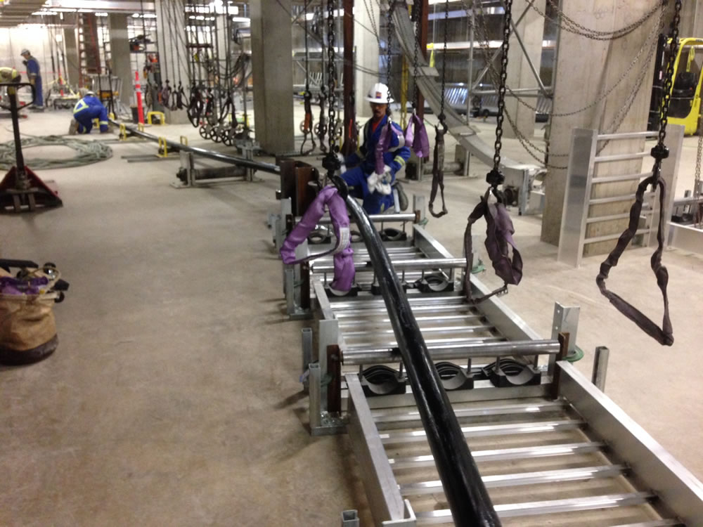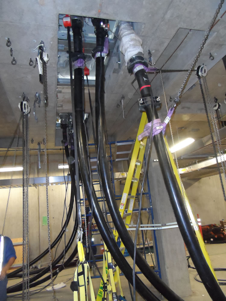 Wilson utilized specialty tooling and detailed planning to successfully rig, pull, handle, and install the cable. Installation services consisted of all cable racking and supports, the pulling of 21 segments of XLPE cable, termination of 21 outdoor potheads and 21 GIS, and grounding and commissioning.